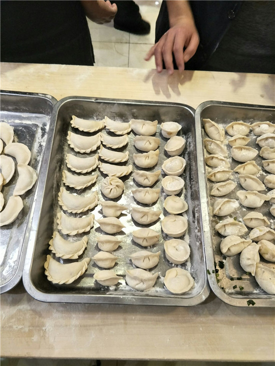 俗話說:“冬至不端餃子碗,凍掉耳朵沒人管”。為了讓大家感受到節(jié)日的溫暖,加強(qiáng)集體凝聚力,大家都熱情高漲,積極參與,整個(gè)包餃子過程,歡聲笑語不斷,大家齊心協(xié)力、精誠合作,一排排獨(dú)具個(gè)性的餃子很快就擺滿了一個(gè)個(gè)盤子。大家快來看看吧